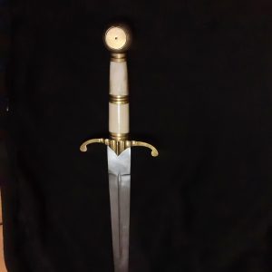 This dagger is based off a sword unearthed from the mud of the River Thames. Thought to be from the 14th century, it was a typical knightly sword of that time period and was later put on display in the Royal Armouries.