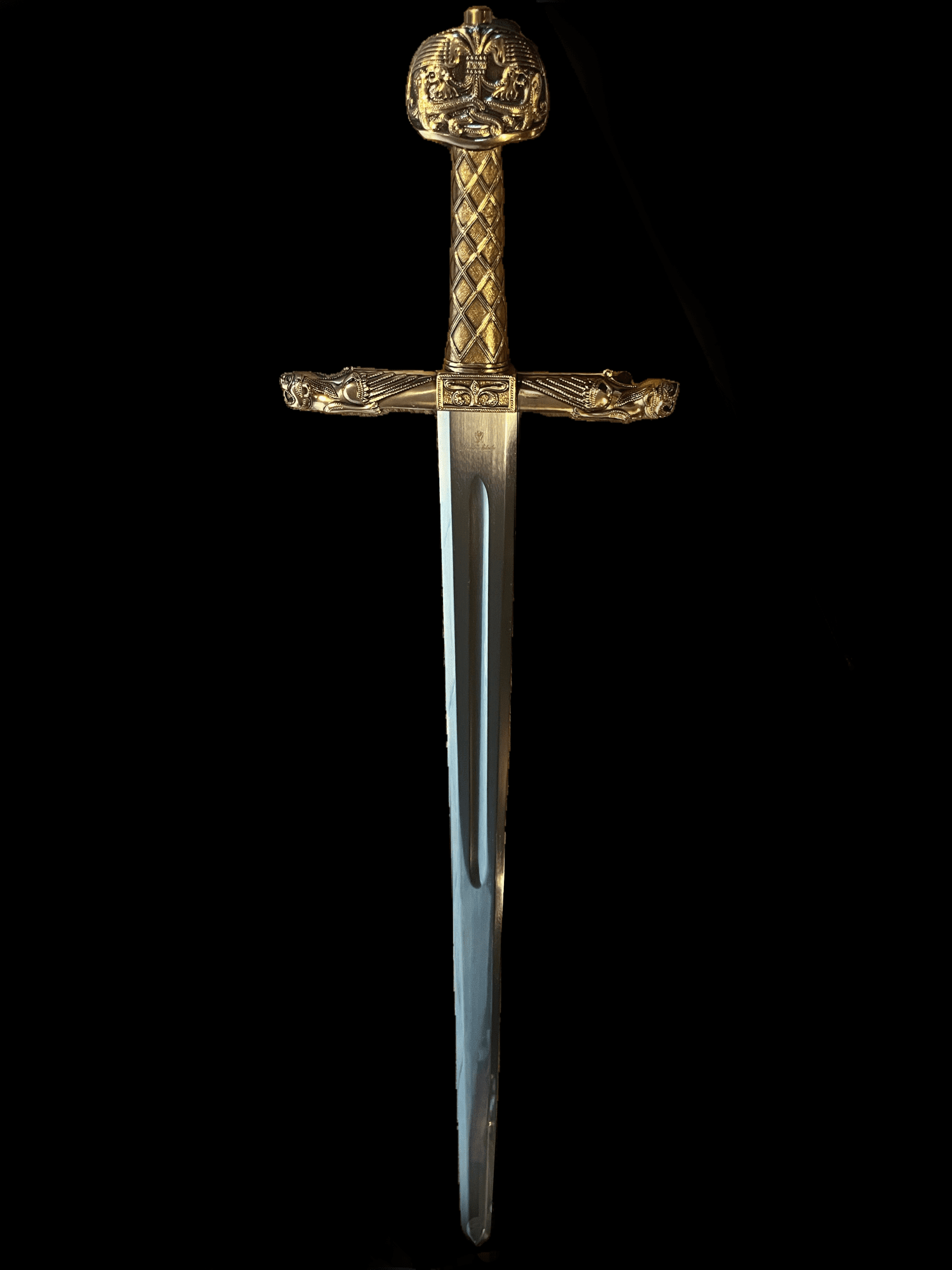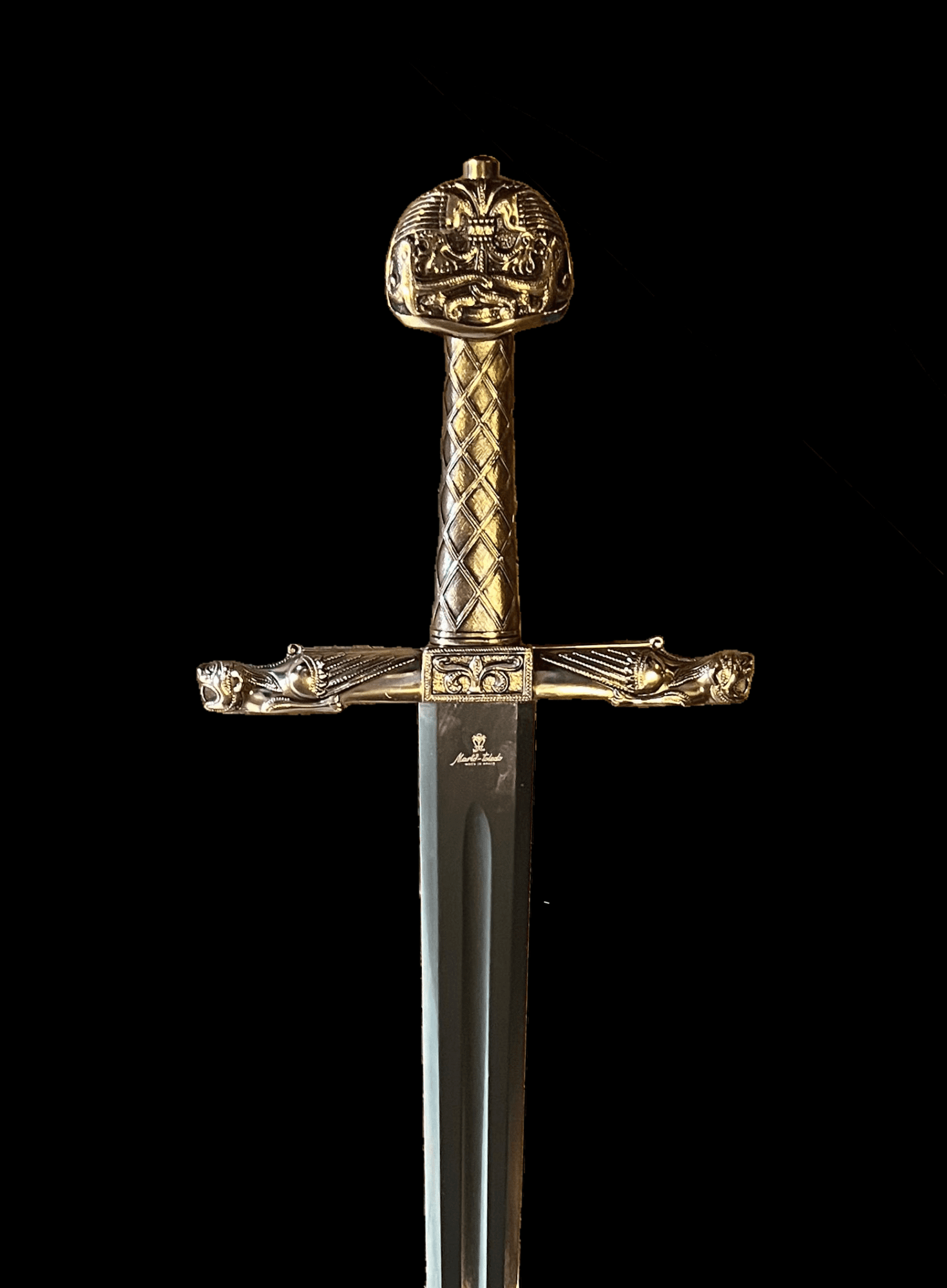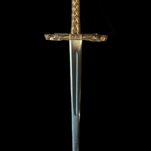 This sword is a replica of ‘Joyeuse’, the sword of consecration used for Charlemagne. Born in the year 742, he was emperor over the Holy Roman Empire, laying the foundations of what would become modern day Western Europe. This sword was described as: ‘Charlemagne was wearing his fine white coat of mail and his helmet with gold-studded stones; by his side hung Joyeuse, and never was there a sword to match it; its colour changed thirty times a day’. Beneath Charlemagne came his Paladins, warriors of such renown that they were the pentacle of valor and spirit in the early Middle Ages.