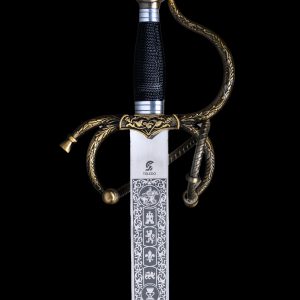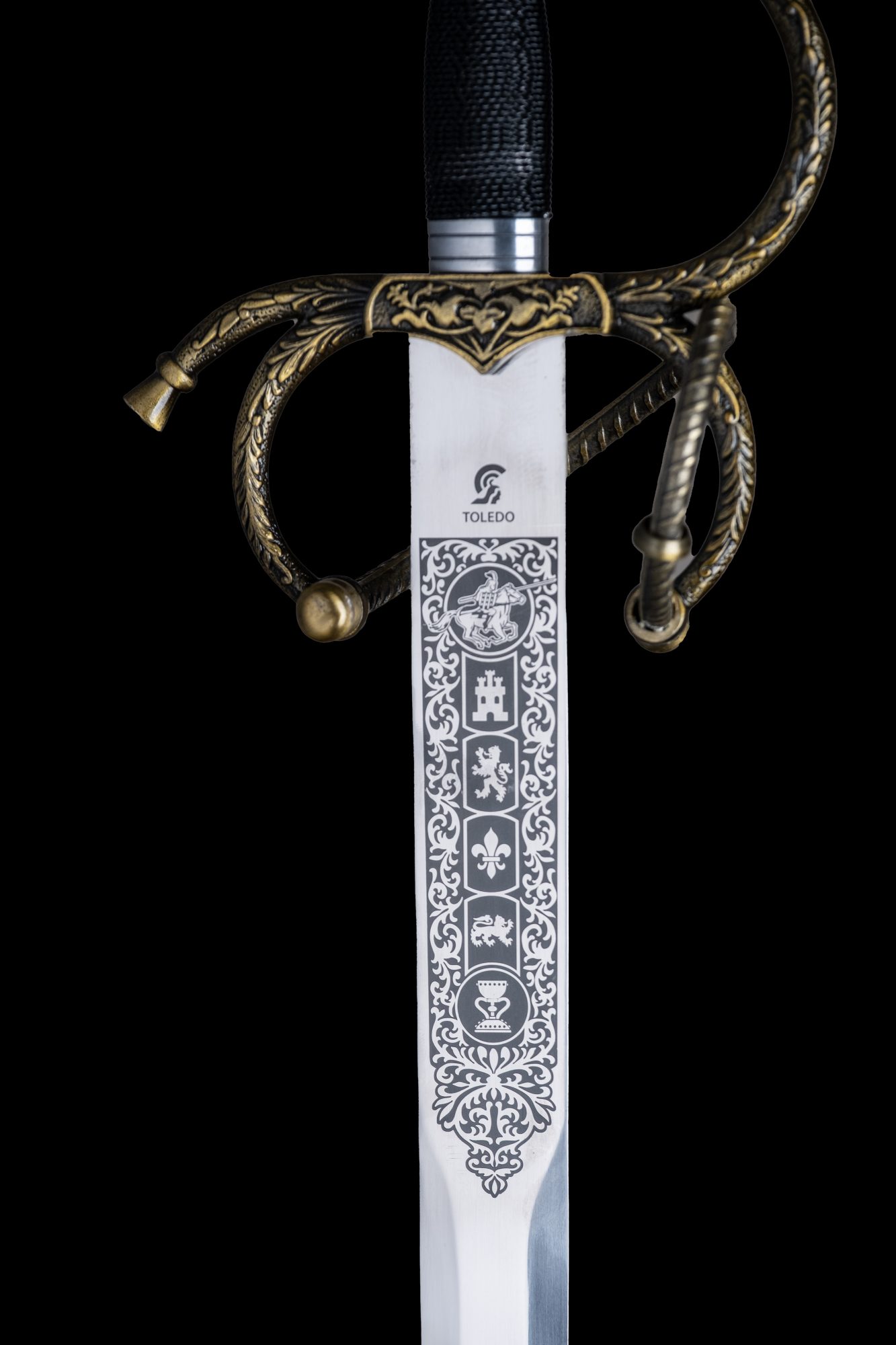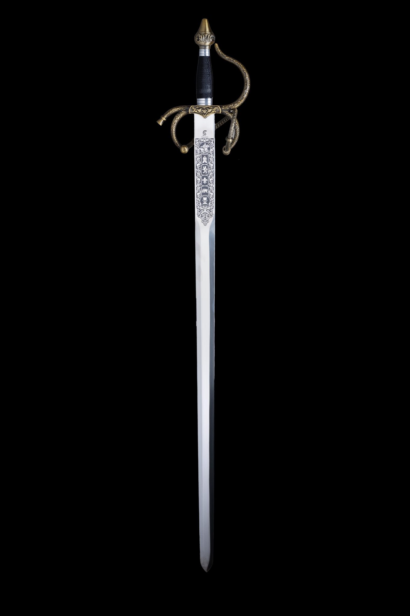 This blade is styled after the one favored by Spanish medieval hero Rodrigo Diaz de Vivar (known as El Cid), who fought in the civil wars between the kingdoms of Leon, Galicia, and Castilla. Considered the ideal for strength and power, El Cid led his men to many grand victories and became one of the greatest military leaders of his time, etched into history through song and poetry.