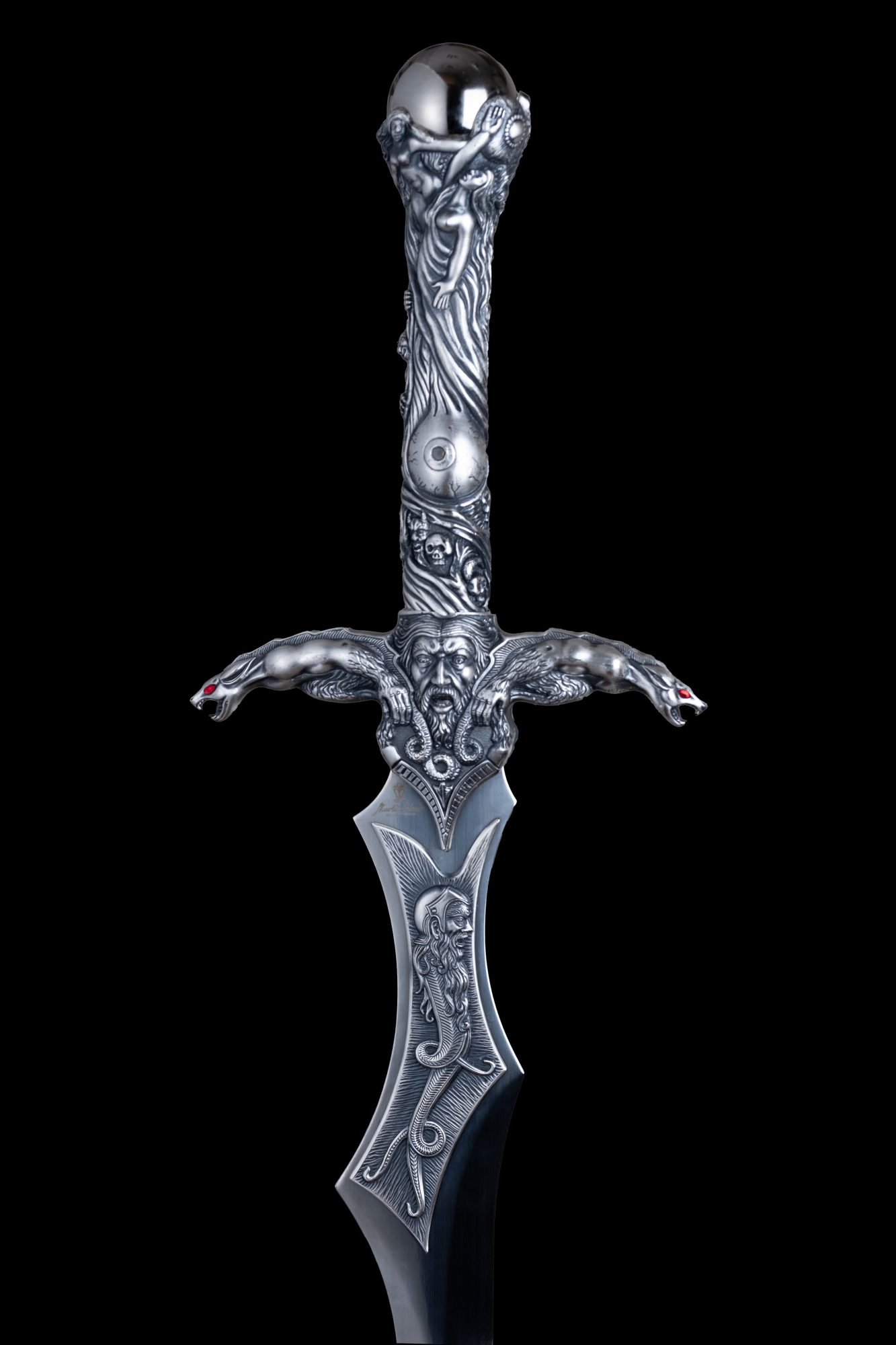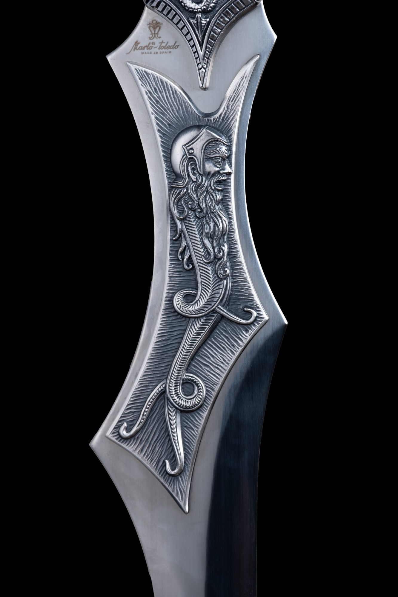Designed in the image of Merlin, the great warrior-druid, who is best known for his part in the great myth of King Arthur. He served as tutor and advisor to the king before and after Arthur pulled the sword from the stone. This grand sword is solid stainless steel and allows for the perfect mix of man and myth for any aspiring spellcaster.