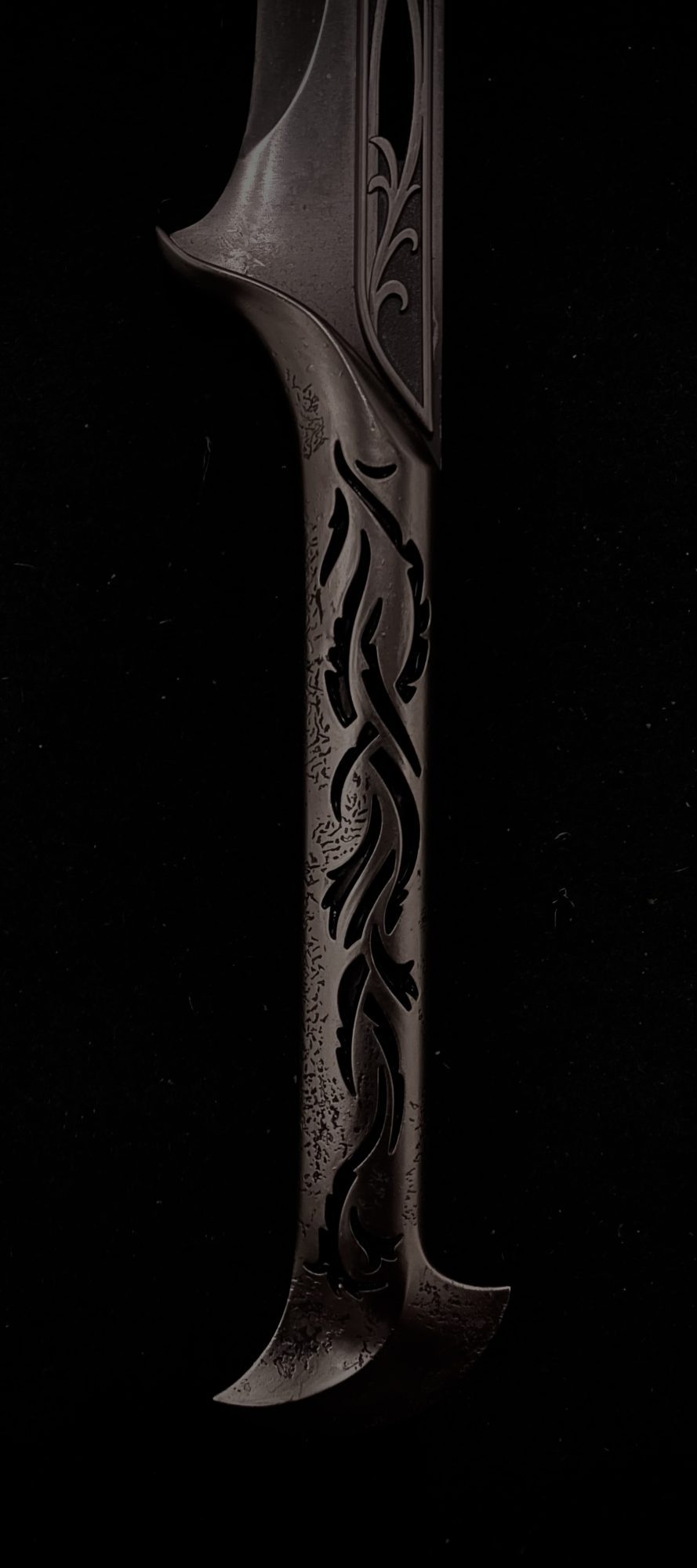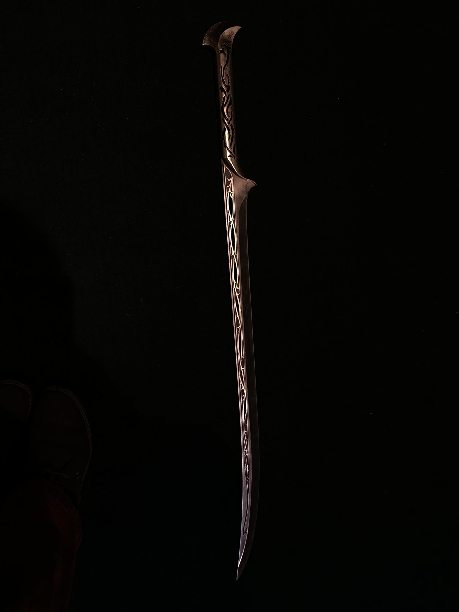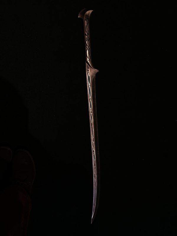 Crafted by Elvish smiths, this sword was thought to have been crafted as early as the First Age, and was carried by Thranduil throughout the events of The Hobbit. It is a long Elvish blade with patterns of leaves and vines to mimic those of the Mirkwood. This blade was also used to kill the Orc soldier Narzug.